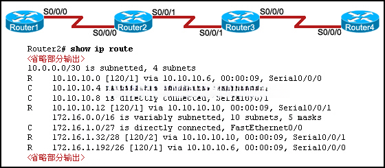 | R 172.16.1.0/24 [120/1] via 192.168.200.1, 00:00:17, Serial0/0/0 | |