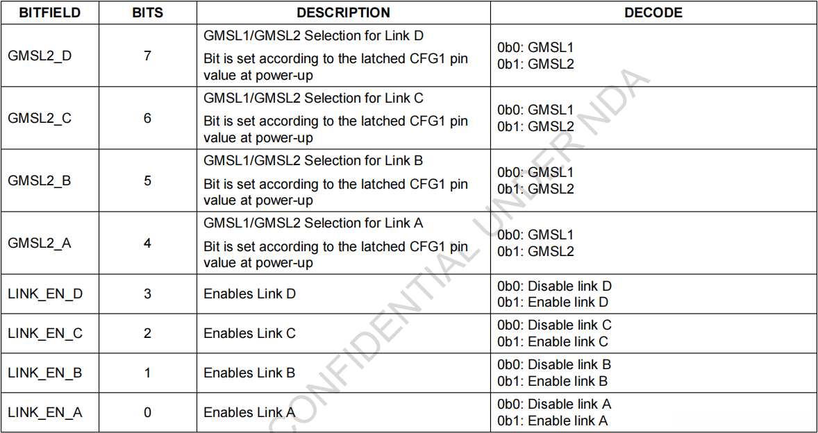 第4至第7位:需要对-linkA至-linkD进行配置以确定它们的工作状态是处于gmsl1还是gmsl2的位置,并且可以选择独立设置其中-linkA的位置于gmsl2位置,其余链接则分配至gmsl1位置