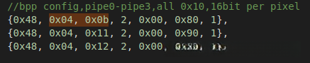 **7.BACKTOP12/BACKTOP18/BACKTOP19(0x40B,0x411,0x412)**PIPE0-PIPE3通道bpp(bits per pixel)格式配置
