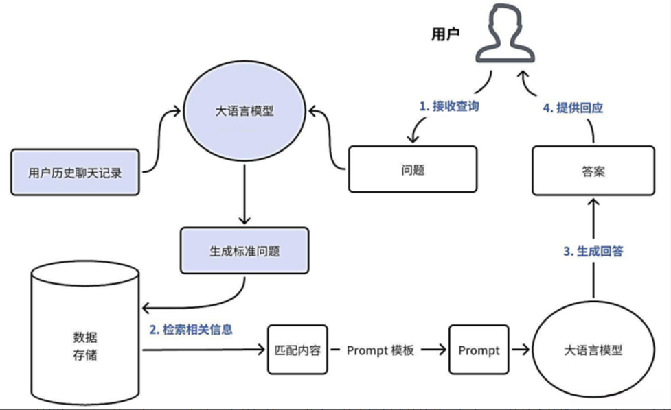 - 利用大语言模型进行信息整合与内容生成:大语言模型将检索到的知识内容与用户的原始查询相结合,并利用其强大的语义理解和上下文推理能力进行信息整合与内容生成。