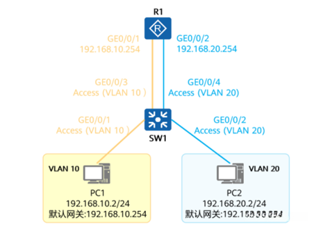 [SW1-GigabitEthernet0/0/2]port default vlan 10
