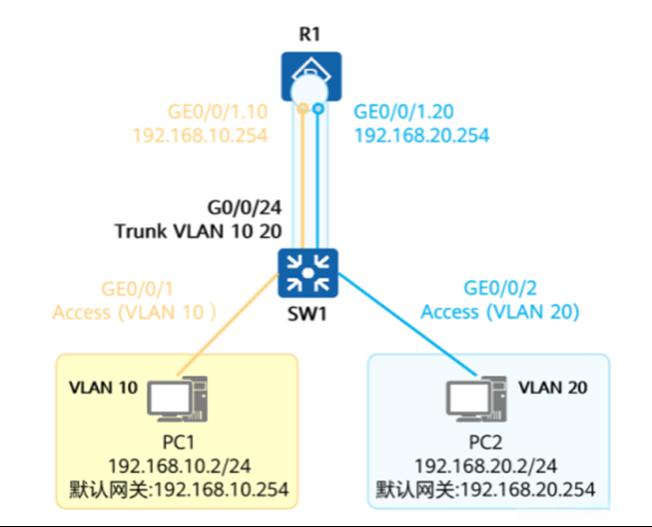 [R1-GigabitEthernet0/0/0.1]dot1q termination vid 10 将数据封装成802.1Q的帧