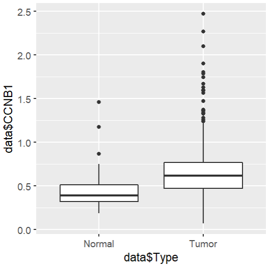 P <- ggplot(data,aes(x = data$Type,y = data$CCNB1))