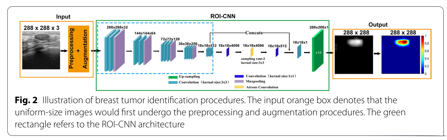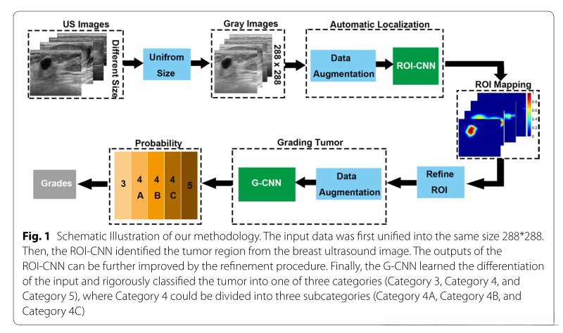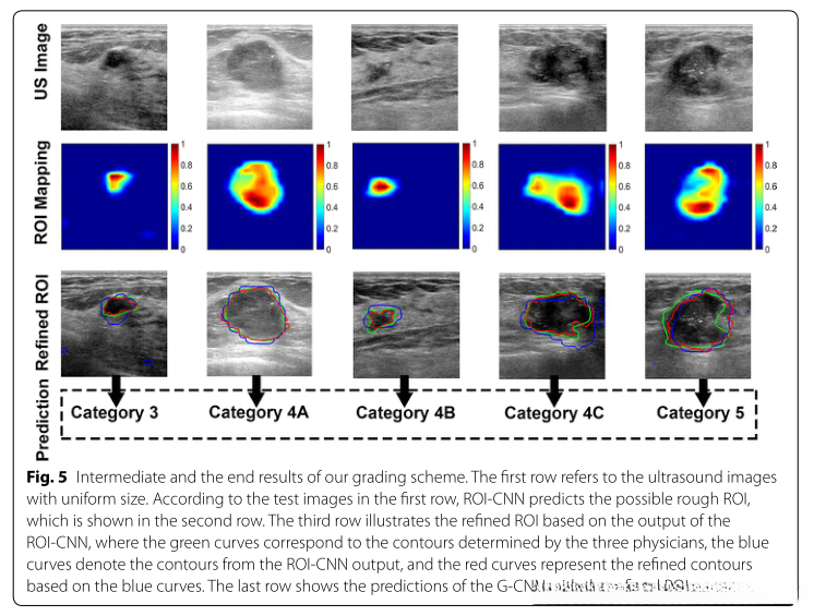 通过有效减少其他组织(如库珀韧带)的影响,在识别相应BUS图像中的肿瘤方面完成了自动分级系统的构建工作。我们所采用的区域感兴趣点识别网络(ROI-CNN)基于全卷积神经网络(FCN)进行了开发 [37]