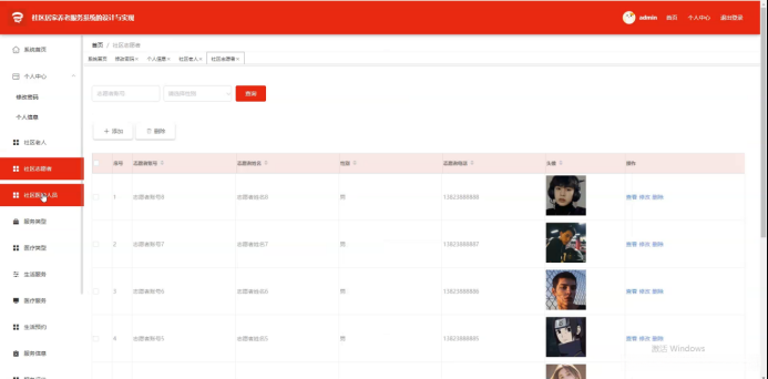 图5-9社区志愿者界面