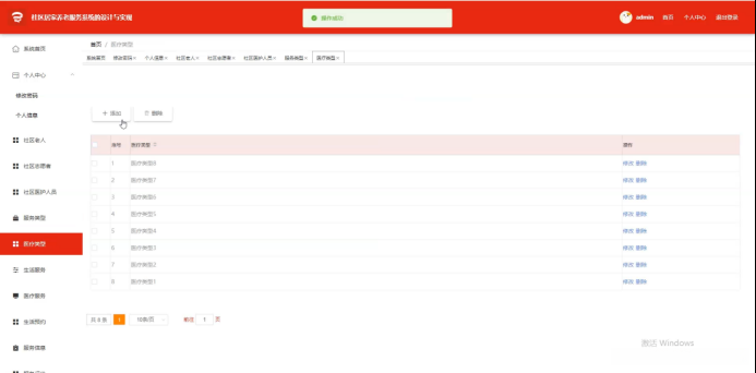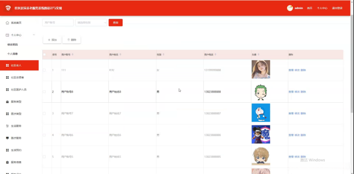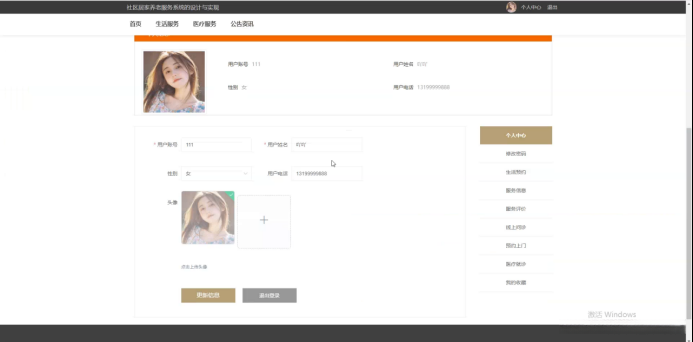 社区老人模块主要实现功能包括但不限于个人中心管理、密码修改操作等,