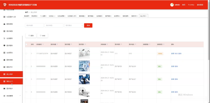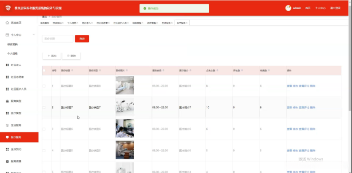 医疗相关服务系统;请通过医疗相关服务页面录入医疗主题以实现搜索、新增、删除医疗项目,并对医疗项目详情页内容进行浏览、编辑以及查看反馈或删除操作;如图5-12所示