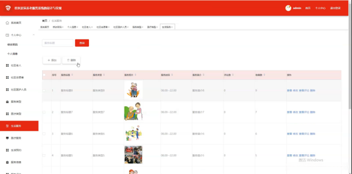 通过页面输入服务标题,在线完成查询并新增或删除生活服务列表;