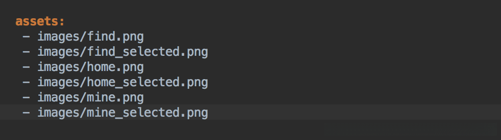 然后所有资源必须得在pubspec.yaml(项目根目录下)文件里声明(如下图)
