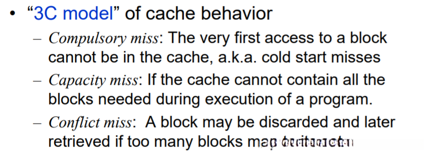 conflict miss:当多个blocks被映射到同一个group中时,该集合内的lines不足(与容量miss存在显著差异)