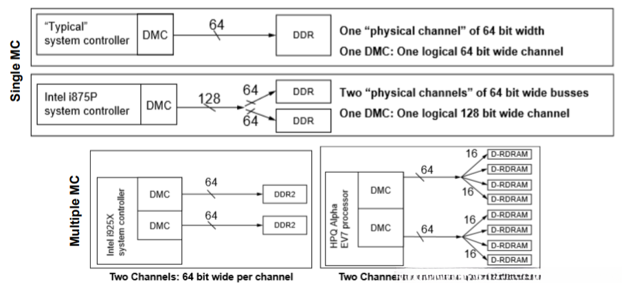 MC:片上的,on-chip,内存控制器。MC控制DIMM。