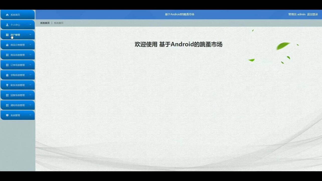 管理员用户具有整个系统的最高权限,可以使用系统中的所有功能模块,包括查看所有跳蚤市场信息,并对这些数据进行管理。在用户模块中可以将新的信息录入系统,还可以查询,删除和编辑权限内的信息。在系统维护管理中可以对用户登录信息、用户权限进行管理。