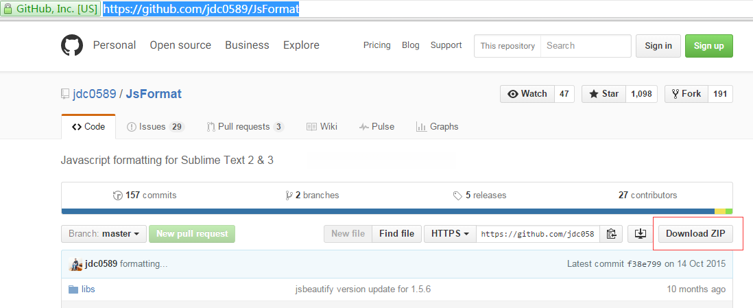 第1步:配置一台可联网使用的电脑设备。启动预装了Package Control功能的Sublime Text软件。通过Package Control功能搜索所需的插件时,则会显示该插件对应的GitHub存储地址。请确保记住该GitHub地址并完成登录操作(或者直接访问GitHub网站搜索插件名称同样可以获得对应资源)。例如JavaScript Formatter工具的GitHub存储地址为:GitHubUrl。访问上述链接后,在GitHub界面中找到对应工具的功能按钮并点击下载。