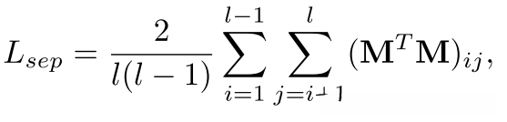 为了确保模式图可以捕获不同的模式,我们应用分离损失来强制每个图关注不同的模式。 将掩模 M(h×w×l )调整为 M(hw×l 后),分离损失定义为