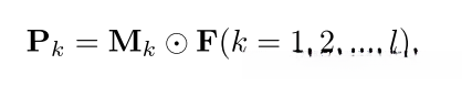 通过这些模式映射,我们可以将特征映射F分割为l个模式,如下所示:
