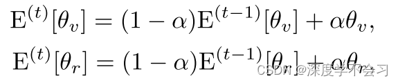 E[θ v] 和E[θ r] 分别表示两个均值分类器的参数。这些参数以时间平均方式更新。因此,在第t次迭代时,参数E(t)[θ v] 和E(t)[θ r]