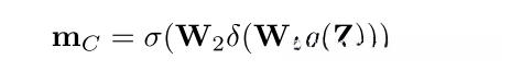 其中g(·) 表示全局平均池化,W1和W2为两个两个无偏置全连接层的可学习参数,其后是relu激活函数 δ(·) 和sigmod激活函数 σ(·)。