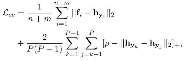 是当前批次中带有标签yi的特征的平均值,P是当前批次中的身份数,ρ 是中心之间的最小余。