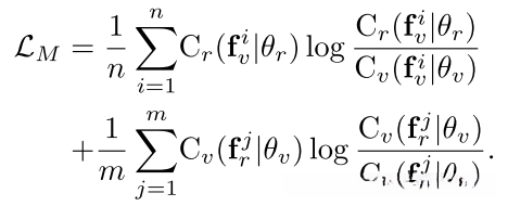 这个损失表示无论它来自什么模态,鼓励特定于模态的分类器为同一性特征提供一致的预测。 但是这直接将使两个分类器的预测迅速变得相似,因为分类器从具有等式的另一种模态中学习知识,而不是学习与情态无关的特征。