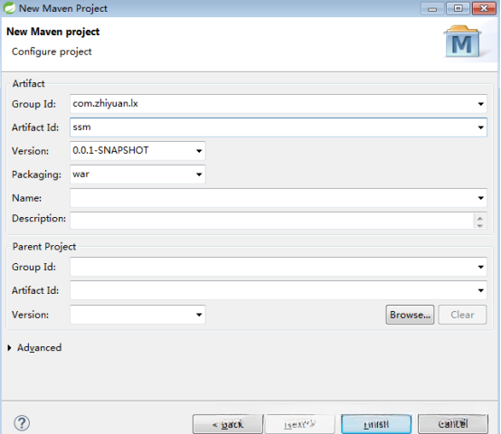第三步:给工程取名字,并把Packaging改为”war”,点击完成