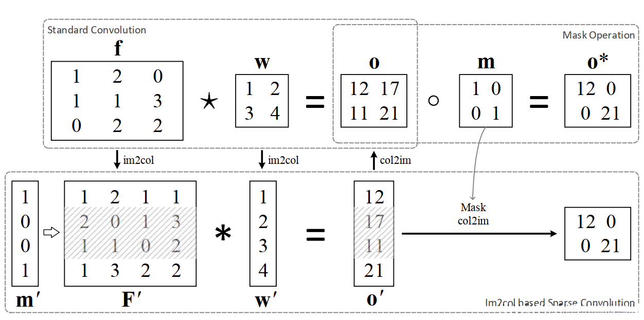 我们采用基于im2col的稀疏卷积进行有效的自适应推理。如图所示,将与