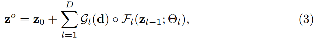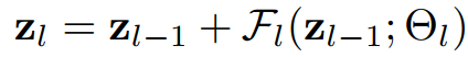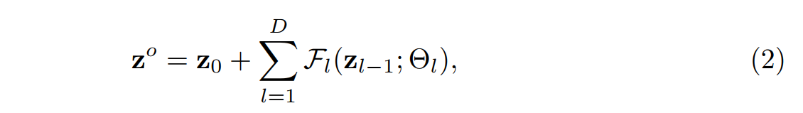 表示第l个残差块的网络参数。给出第(l-1)个残差块的输出,第l个残差块可以被写成