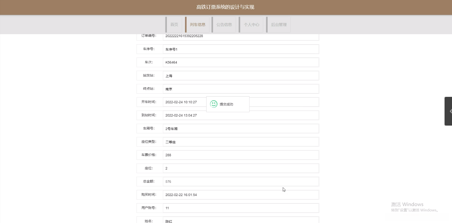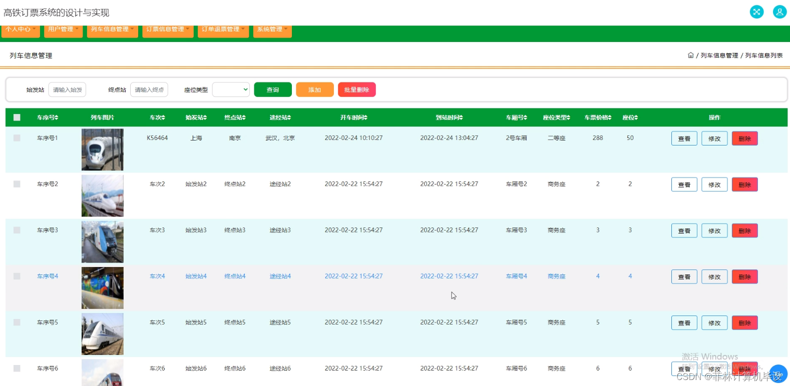 高铁订票系统的设计与实现(JSP+java+springmvc+mysql+MyBatis)