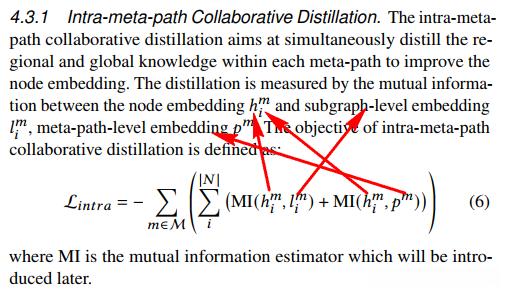 鉴于上述异构知识建模,基于良好的metapath嵌入,预计提取区域知识和全局知识meta-path M。这表明,知识蒸馏问题通常涉及元路径内和元路径间的蒸馏。我们利用互信息(MI)作为测量蒸馏,已广泛应用于捕获变量间的非线性统计依赖性。将知识蒸馏任务划分为内部和外部路径的蒸馏。