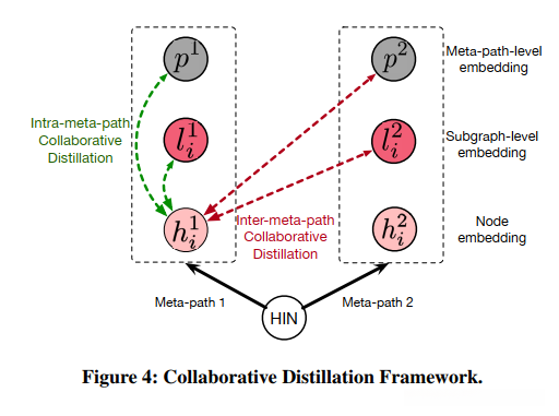 - 基于现有信息,我们首次采用协同知识精馏框架来建模HIN中元路径嵌入之间的相关性。