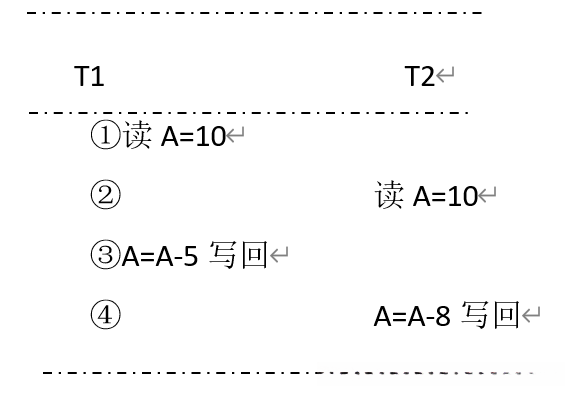 A=10是读,而A=A-8在写的时候已经少于10了,所以是数据丢失。