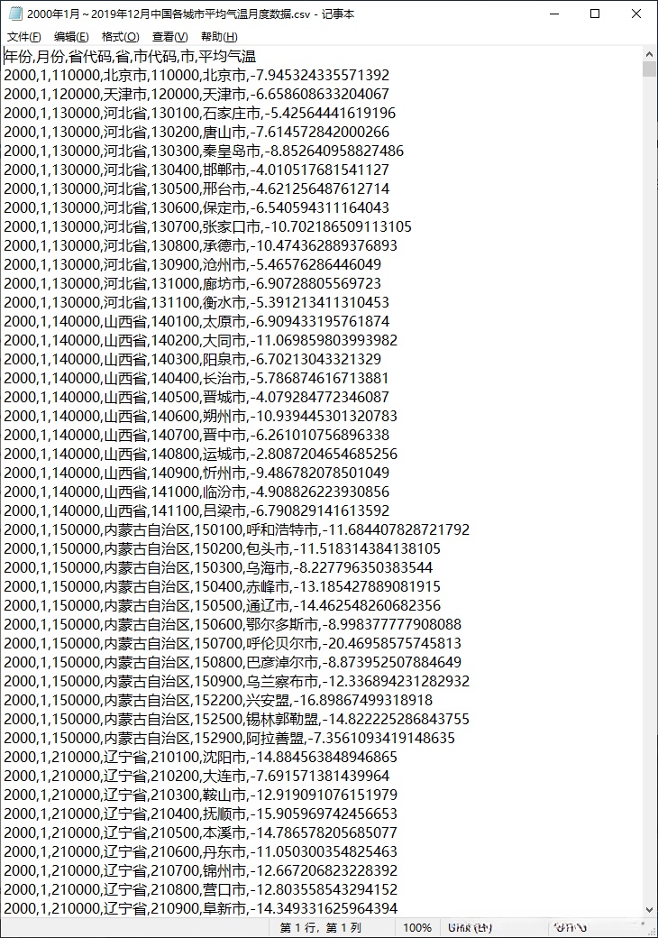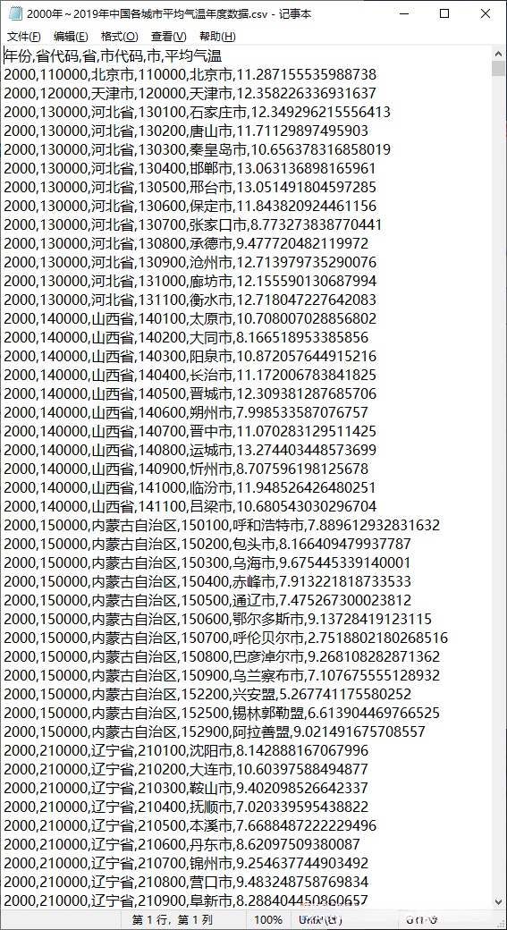 点击下载:中国全国各省级地市州地级市城市县级区县年度月度日度平均气温数据2000-2019