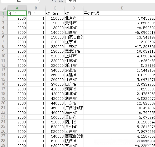 中国全国各省级地市州地级市城市县级区县年度月度日度平均气温数据2000-2019