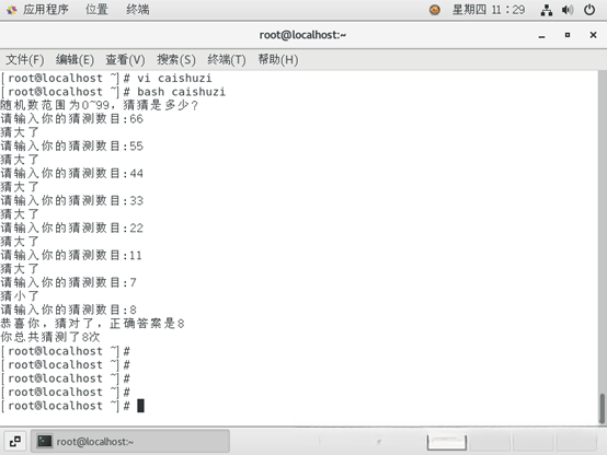 脚本创建一个100以下的随机数,并在用户猜测时提供线索。如果用户的输入正确,则给出正确的回应。