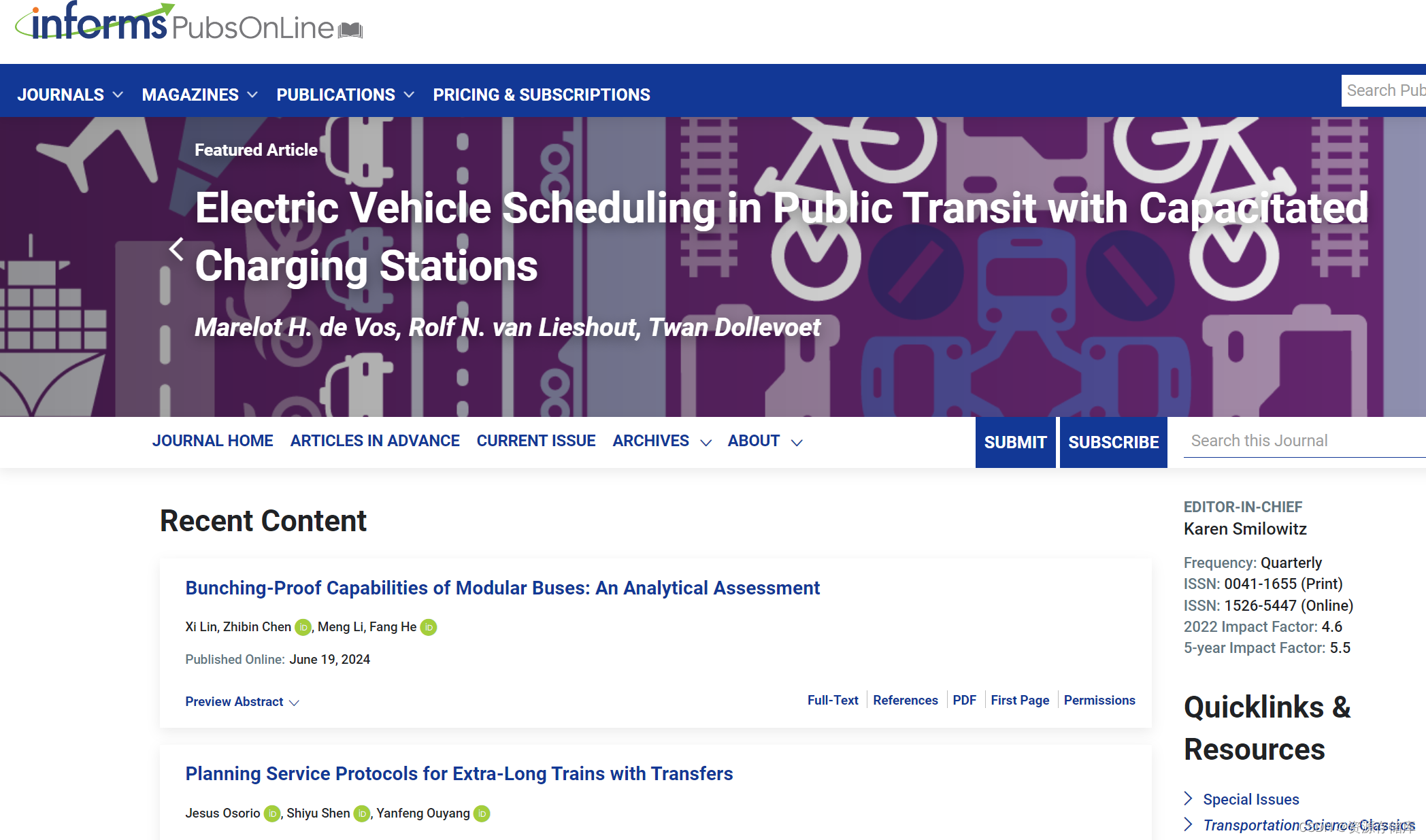 作为交通系统分析跨学科研究领域的最重要科学期刊,《运输科学》致力于发表与现有及未来所有交通方式相关的高质量原创性贡献……