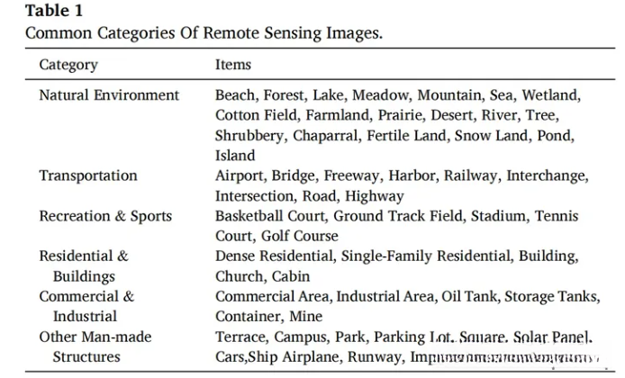 在多模态变化检测任务中,我们通常使用单一模态(主要是遥感图像)来识别变化。为了结合基于文本的提示,我们使用 CLIP 模型根据 56 种常见土地覆盖类别的分类法生成描述性提示,如表 1 所示。这些类别涵盖了遥感数据集中常见的大多数目标元素。为了方便参考,我们进一步将这 56 种类型分为更广泛的分类,如表 1 所示。
