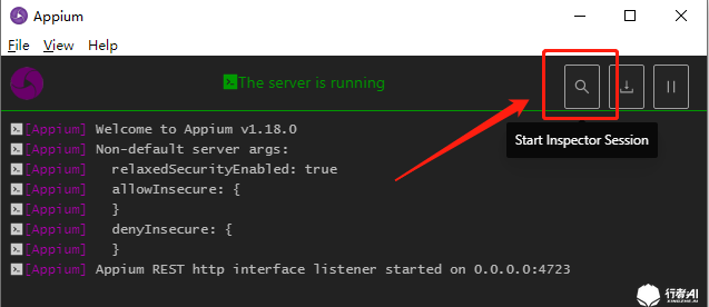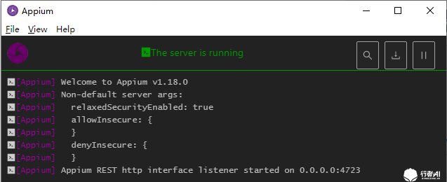 (3)设置好后保存并重启Appium,然后启动服务,出现以下画面,说明你的appium server已经正常启动了,可以开始真机测试了。