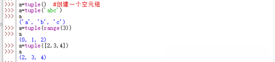 ②通过 tuple()创建元组,tuple(可迭代的对象)