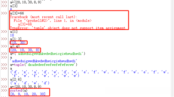 在Python中定义了一个新的数据类型称为"tuple"(即"括号"),它的元素是不可变的;与list(即"列表")不同的是,在这种情况下它允许类似的方式访问其元素,并且仍然返回的是一个tuple(即"括号")对象;如果需要对tuple进行排序,则必须使用内置函数sorted(tupleObj),这将产生一个新的list(即"列表")对象而不是修改原始tuple(即括号)本身