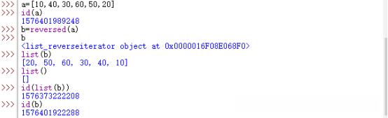 - reversed()生成一个迭代器;内置函数reversed()能够实现逆序排列;与列表对象reverse()方法的区别在于:内置函数reversed()不会修改原始列表对象;即它不进行降序排序。