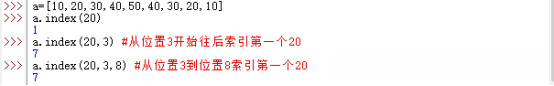 该方法用于获取指定元素第一次出现的位置。其语法为index(value,[start,[end]])。其中参数start和end指定了搜索范围