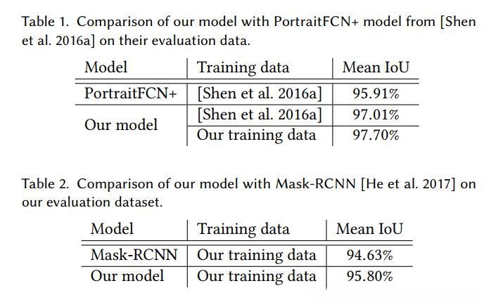 The performance of the model is 3.07 GigaFLOPS, which is significantly higher than 607 in PortraitFCN+ and 3160 in Mask-RCNN when measured using the Tensorflow Model Benchmark Tool.