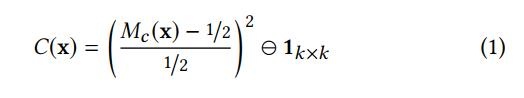 an edge-aware filtering strategy to increase the resolution of the low-resolution mask M(x) predicted by a neural network.