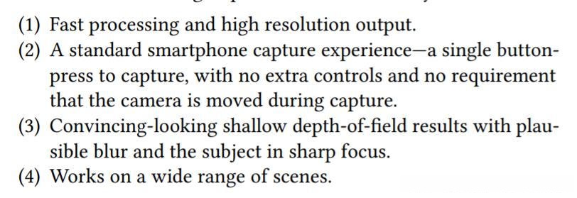 We thereby build upon the stereographic workflow established by Barron et al. [2015] and the edge-aware development from Anderson et al. [2016] to create a stereo algorithm which is both tractable at high resolutions and specifically suited for defocus tasks through its ability to adhere to image input edges.