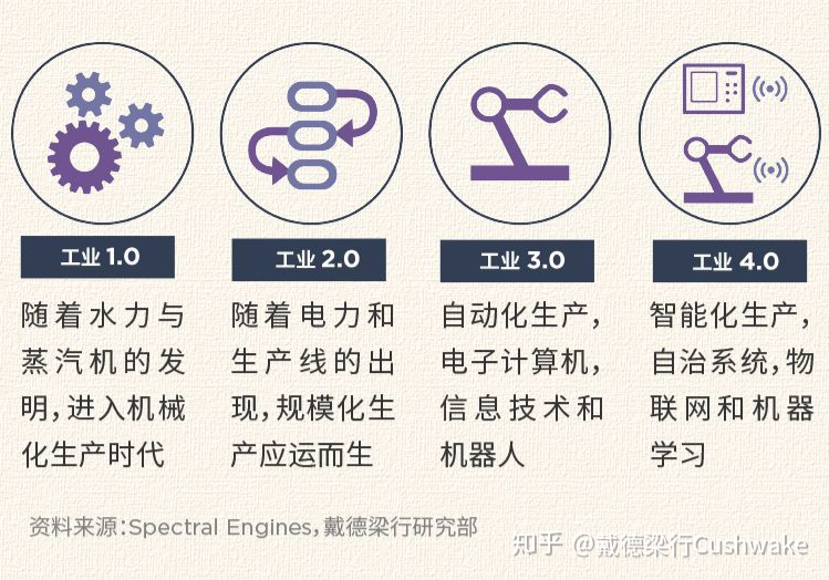 第四次工业革命——上世纪六十年代末——自动化、计算机以及机器人等信息科技得以整合应用于制造业