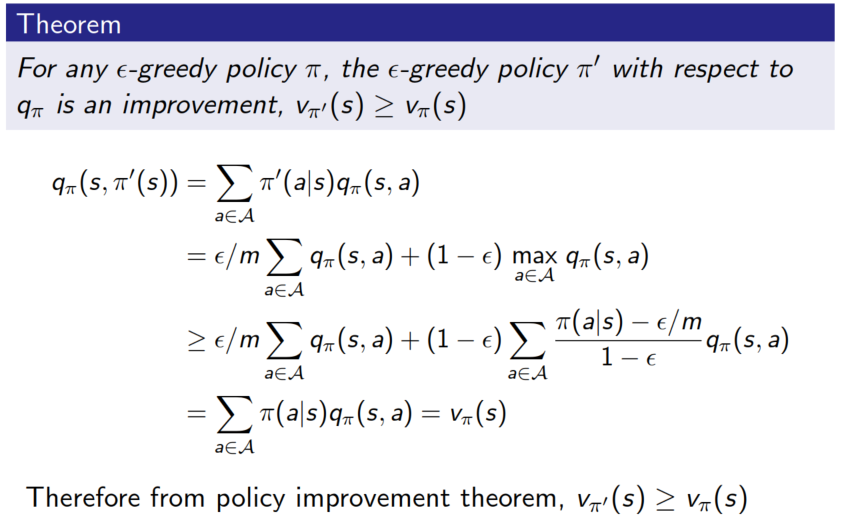具体表现为:所有已经经历的状态动作对会被无限次探索;而随着迭代过程,贪婪算法中\varepsilon的值会趋向于0。例如,取\varepsilon = 1/k(k为episode数目)。