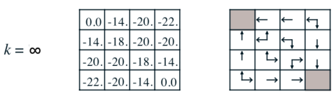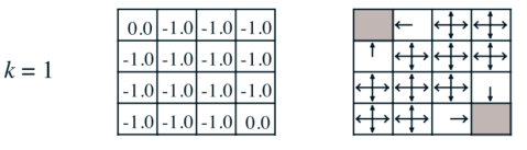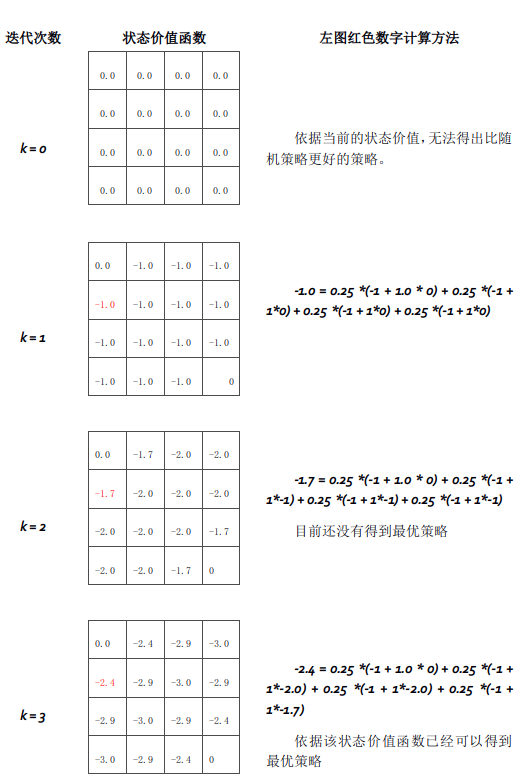 在上面的方格世界例子中,当k=1时,即第1次迭代时: