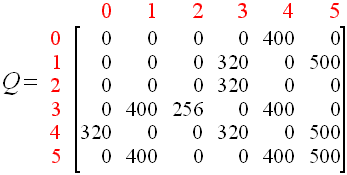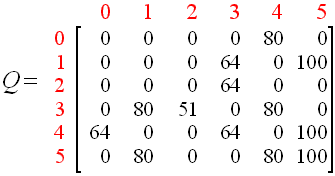 对矩阵进行规范化,每个非零元素都除以矩阵Q的最大元素(这里为500),可得(这里省略了百分号):