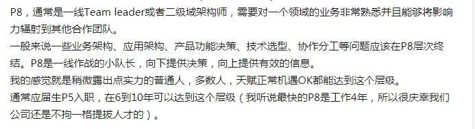 但是,满足前面4点,三年经验也只能保证你能有P6的评级,不一定能保证P7的评级,那么,如何才能评到P7呢?以笔者观察到的案例,是否P7一条最关键的就是你是否业内有知名度。