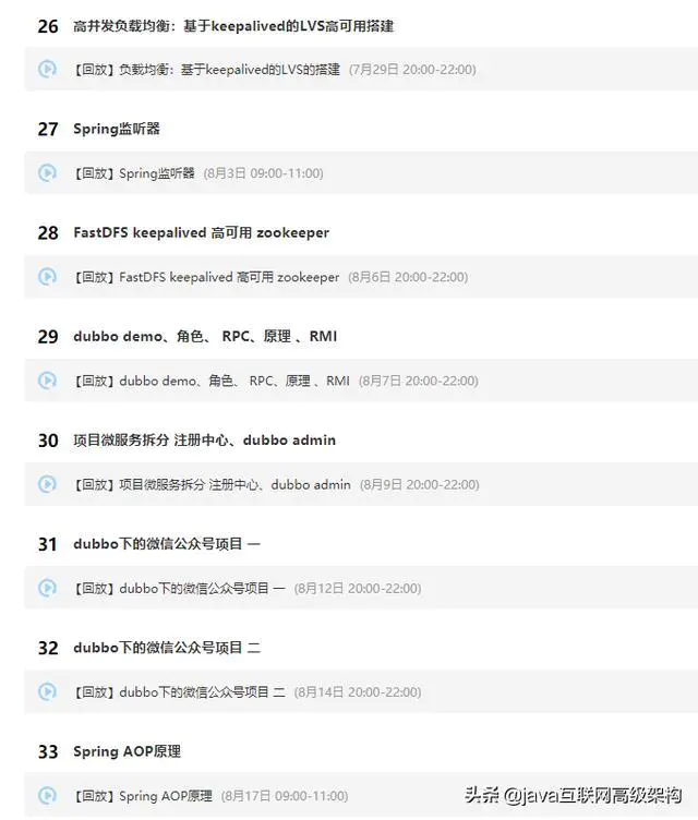 备注:(架构视频包含:Spring boot、Spring cloud、Dubbo、Redis、ActiveMQ、Nginx、Mycat、Spring、MongoDB、ZeroMQ、Git、Nosql、Jvm、Mecached、Netty、Nio、Mina、性能调优、高并发、tomcat 负载均衡、大型电商项目实战、高可用、高可扩展、数据库架构设计、Solr 集群与应用、分布式实战、主从复制、高可用集群等高端视频。)