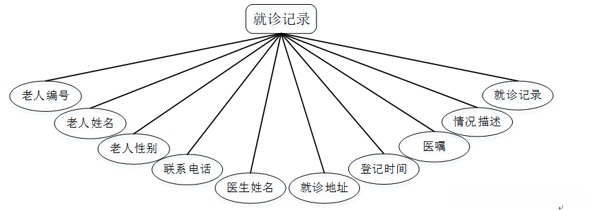 本社区独居老人健康的E-R图描述了在系统中各个实体之间的联系,以下是对部分主要的关键实体如下: